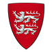 2 ardent lions passant on red background reflecting the red & white colours of Hunstanton Cliffs