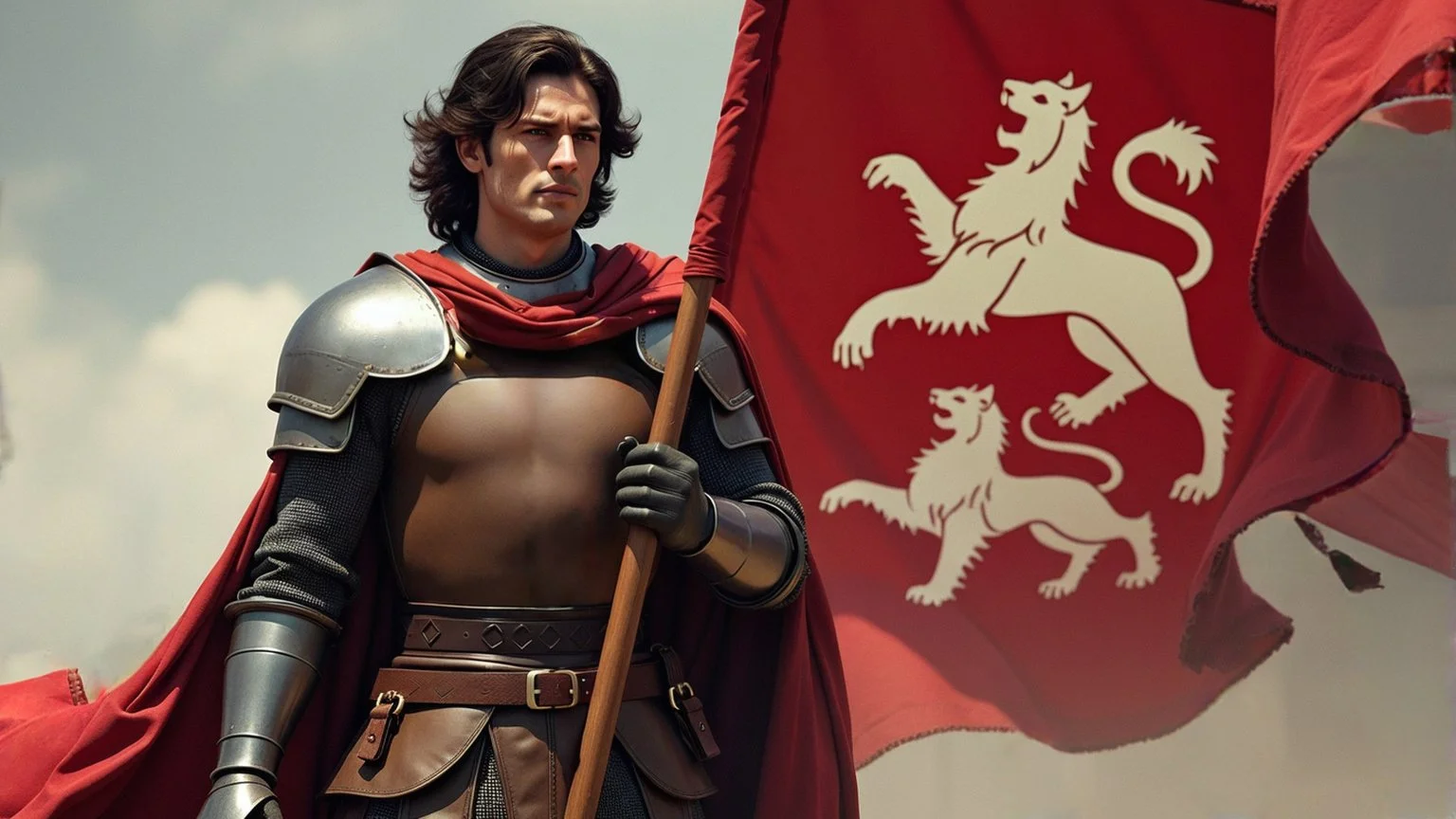Image depicting a Marcher Lord carrying the le Strange Banner